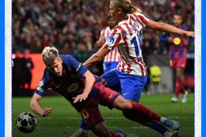 欧冠1/4决赛次回合,巴萨2-1、总比分2-3马竞遭淘汰,奥尔莫禁区内倒地未判引争议。