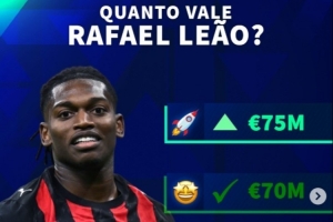 莱奥当前身价为7000万欧,根据德转社媒信息,莱奥的身价可能增加至7500万欧,可能保持不变,也可能下降至6500万欧或者6000万欧。